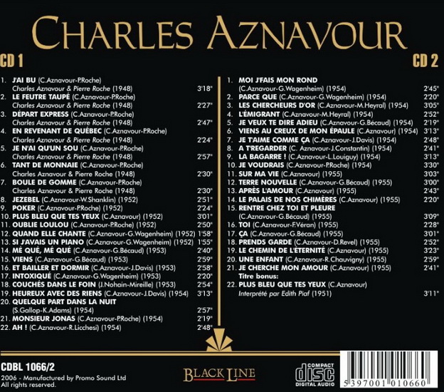 CD1 : J'Ai Bu (Avec Pierre Roche) - Le Feutre Taupé (Avec Pierre Roche) - Départ Express (Avec Pierre Roche) - En Revenant De Québec (Avec Pierre Roche) - Je N'Ai Qu'Un Sou (Avec Pierre Roche) - Tant De Monnaie (Avec Pierre Roche) - Jezebel - Poker - Plus Bleu Que Tes Yeux - Oublie Loulou - Quand Elle Chante - Si J'Avais Un Piano - Mé Qué, Mé Qué - Viens - Et Bailler Et Dormir - Intoxiqué - Couchés Dans Le Foin - Heureux Avec Des Riens - Quelque Part Dans La Nuit - Monieur Jonas - Ah !
