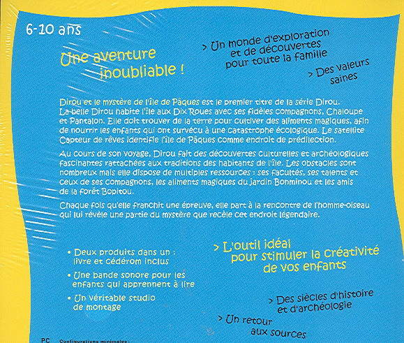 Sur le CD-ROM, on retrouve deux grandes sections : L’Île aux Dix Roues et l’Île de Pâques. Dans la première, on propose diverses activités ludoéducative, et, dans le second, trois types de jeux : le premier fait appel aux traditions et aux rituels des différents peuples, le second porte sur une série d’aventures associées aux quatre éléments de la nature, et le dernier présente un atelier de création lié aux ressources et au Patrimoine de l'Île de Pâques.