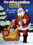 Le père Noël se prépare à aller distribuer les cadeaux avec ses rennes. Les enfants peuvent décorer chaque scène avec les autocollants du livre.