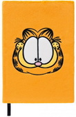 Carnet de notes Garfield. Présente une couverture recouverte de tissu en peluche et un design brodé, intérieur personnalisé, coins droits, reliure collée, poche et ruban marque-page.