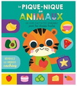 Un album animé de matières à toucher représentant cinq animaux avec de gros yeux mobiles.