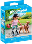 Partez faire du sport avec une jeune femme qui fait du roller en jouant au frisbee avec son chien ! Comprend un personnage, un chien ainsi que des accessoires.