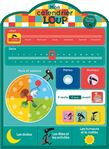 Un calendrier de tissu avec des pochettes, des badges et une anse.