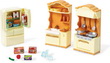 L'ensemble de cuisine comprend un réfrigérateur à deux portes et trois tiroirs, une cuisinière et un évier, ainsi que des ustensiles de cuisine et d'autres petits accessoires. Il comprend des usten... » Read more...