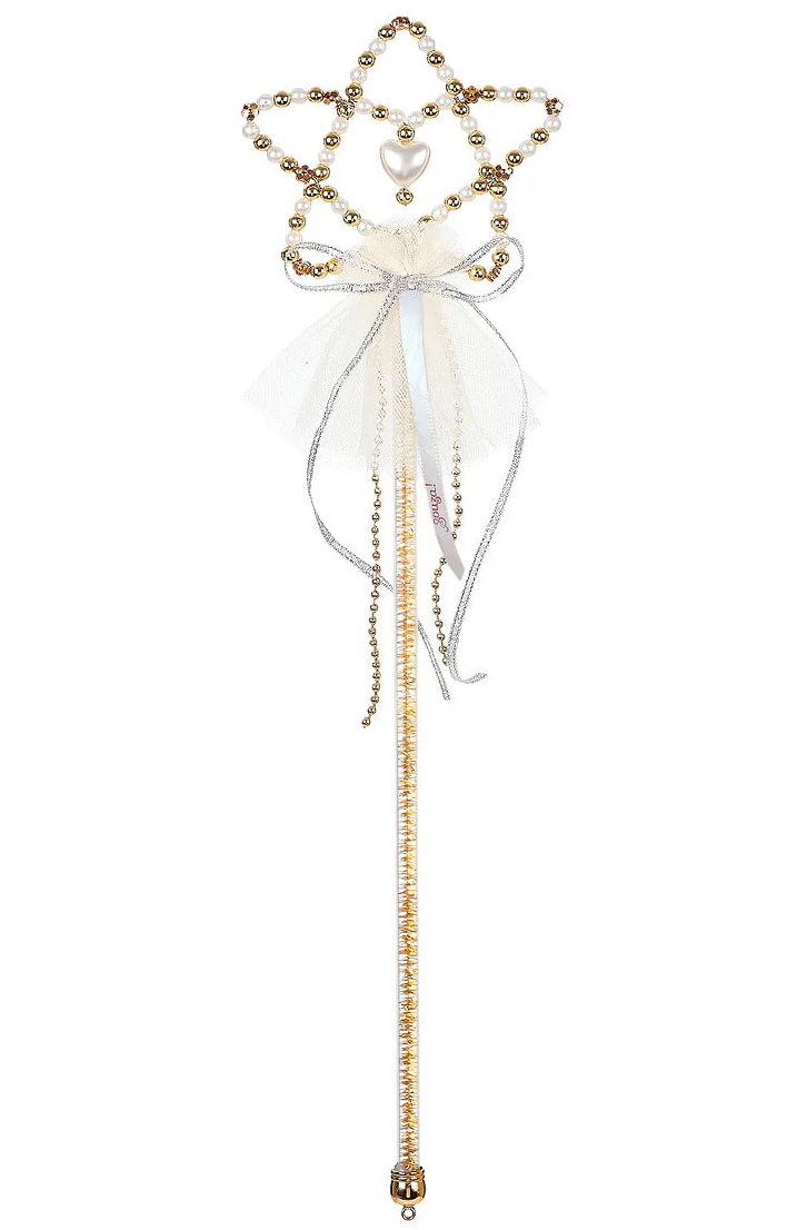 Cette baguette magique est en forme d'étoile dorée, décorée de superbes paillettes qui apportent lumière et brillance et aussi des jolis rubans pour donner un côté très élégant à la fée qui l'utili... » Read more...
