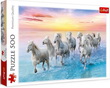 Puzzle premium de 500 pièces. Le motif représente un troupeau de chevaux blancs qui gallopent dans l'eau à la rive de la mer.