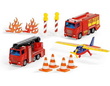Coffret Pompiers qui contient deux véhicules de Pompiers avec un avion et des accessoires afin d'être prêt à intervenir lors du prochain feu !