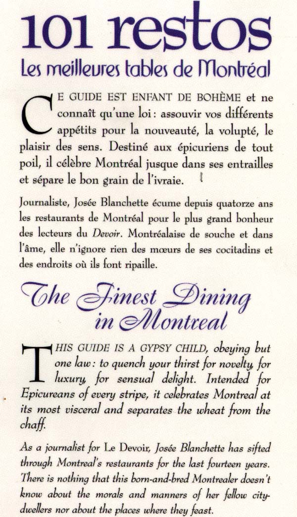 101 restos: meilleures tables.. Montréal - JOSEE BLANCHETTE