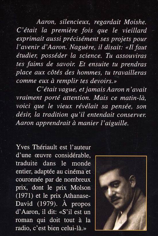 C'était vague, et jamais Aaron n'avait vraiment porté attention. Mais ce matin-là, voici que le vieux révélait sa pensée, son désir, la tradition qu'il entendait conserver. Aaron apprendrait à manier l'aiguille.