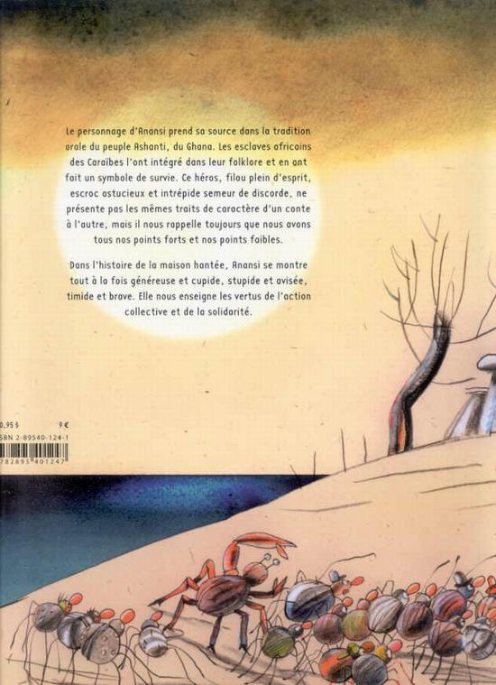 Le personnage d'Anansi prend sa source dans la tradition orale du peuple Ashanti, du Ghana. Les esclaves africains des Caraïbes l'ont intégré dans leur folklore et en ont fait un symbole de survie. Dans ce conte, Anansi enseigne les vertus de l'action collective et de la solidarité.