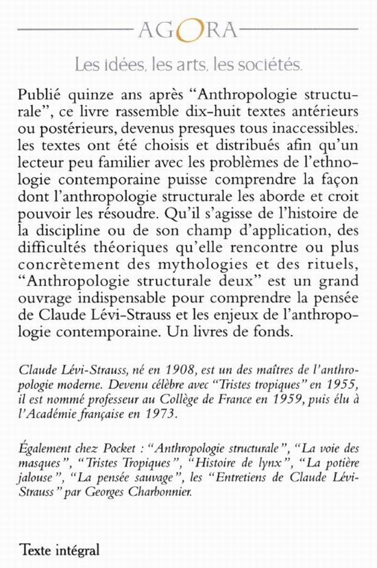 Anthropologie structurale T.02 - C LEVI-STRAUSS