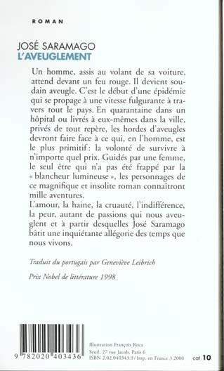 Un homme devient soudainement aveugle. C'est le début d'une épidémie qui se propage à une vitesse fulgurante à travers tout le pays. Mises en quarantaine, privées de tout repère, les hordes d'aveugles tentent de survivre à n'importe quel prix. Seule une femme n'a pas été frappée par la "blancheur lumineuse". Saura-t-elle les guider hors de ces ténèbres désertées par l'humanité ?