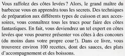Vous raffolez des côtes levées ? Alors, le grand maître du barbecue vous en apprendra tous les secrets. Des techniques de préparation aux différents types de cuisson et aux accessoires, vous connaîtrez tous les trucs pour faire des côtes fantastiques. En fait, vous deviendrez un tel expert en côtes levées que vous pourrez présenter vos côtes à des concours (du moins dans votre propre cour !). Des recettes savoureuses, agréables à servir à vos invités, mais surtout bonnes à s’en lécher les doigts ! Ces recettes absolument succulentes mettent en valeur de bons ingrédients et s’inspirent de nombreuses traditions culinaires, ce qui donne envie de les déguster sans la moindre culpabilité...