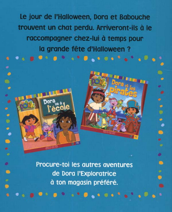 Le jour de l'Halloween, Dora et Babouche trouvent un chat perdu. Arriveront-ils à le raccompagner chez-lui à temps pour la grande fête d'Halloween?