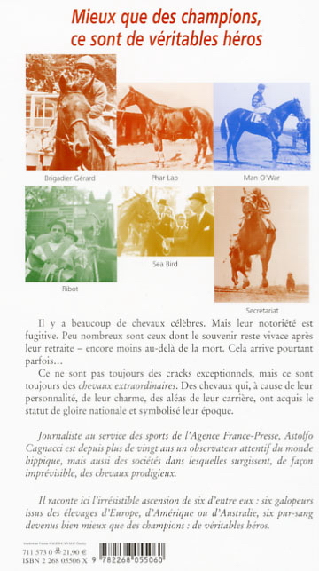 A travers les histoires de six pur-sang, l'auteur, journaliste au service des sports de l'agence France-presse, propose d'appréhender le phénomène de transfiguration du champion quadrupède, ou crack, en icône connue du grand public.