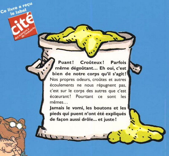 Puant ! croûteux ! parfois même dégoûtant... eh oui, c'est bien notre corps qu'il s'agit ! nos propres odeurs, croûtes et autres écoulements ne nous répugnent et pas, c'est sur le corps des autres que c'est écœurant ! pourtant ce sont les mêmes... jamais le vomi, les boutons et les pieds qui puent n'ont été expliqués de façon aussi drôle... et juste !
