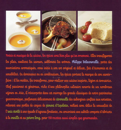 Poésie et musique de la cuisine, les épices sont bien plus qu'un ornement. Elles transfigurent les plats, exaltent les saveurs, subliment les arômes. Philippe Delacourcelle, poète des associations aromatiques, vous initie à son art original et délicat, fait d'économie et de sensibilité. En dominance ou en combinaison, les épices portent la marque de son savoir-faire : il les médite, les transforme, pour réaliser une cuisine inspirée, légère et évocatrice. Chef passionné et généreux, riche d'une philosophie culinaire nourrie de ses nombreux séjours en Asie, il réinterprète dans cet ouvrage les grands classiques de notre patrimoine gastronomique, parfumant délicatement de citronnelle des aubergines confites aux noisettes, relevant une poêlée de coques de piment d'Espelette, mêlant avec délice la sensualité de l'anis étoilé à une épaule d'agneau fondante, ou concoctant une subtile compote d'abricots à la vanille et au poivre long, pour 150 recettes aussi simples que gourmandes.