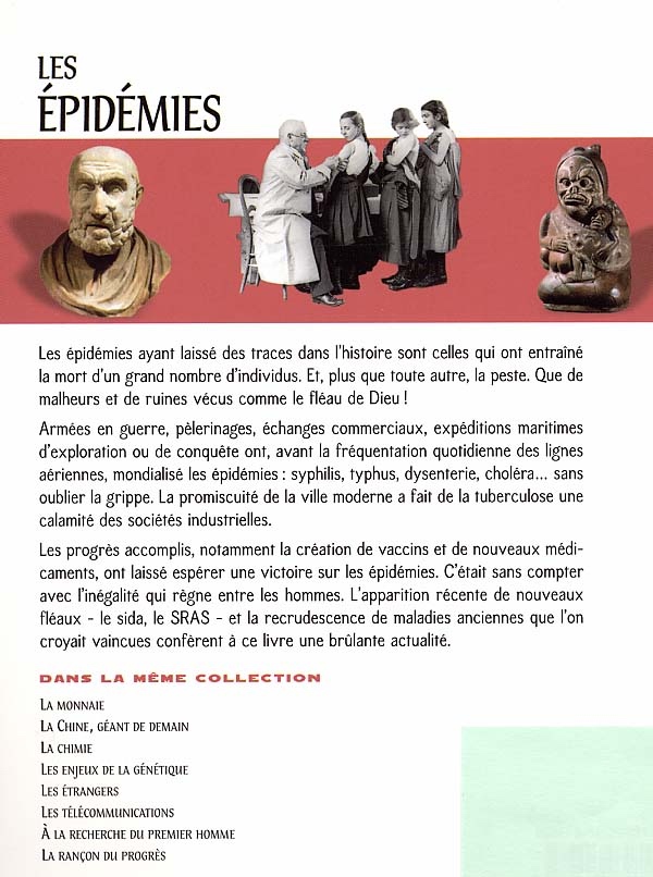 Les épidémies ayant laissé des traces dans l'histoire sont celles qui ont entraîné la mort d'un grand nombre d'individus. Et, plus que toute autre, la peste. Que de malheurs et de ruines vécus comme le fléau de Dieu ! Armées en guerre, pèlerinages, échanges commerciaux, expéditions maritimes d'exploration ou de conquête ont, avant la fréquentation quotidienne des lignes aériennes, mondialisé les épidémies : syphilis, typhus, dysenterie, choléra... sans oublier la grippe. La promiscuité de la ville moderne a fait de la tuberculose une calamité des sociétés industrielles. Les progrès accomplis, notamment la création de vaccins et de nouveaux médicaments, ont laissé espérer une victoire sur les épidémies. C'était sans compter avec l'inégalité qui règne entre les hommes. L'apparition récente de nouveaux fléaux - le sida, le SRAS - et la recrudescence de maladies anciennes que l'on croyait vaincues confèrent à ce livre une brûlante actualité.