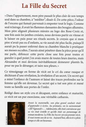 J’ai vu mon père mourir. Je l’ai vu tirer ses dernières cartes de tarot, peu après sa décision d’entamer la morphine à cause de sa douleur. J’ai vu des infirmières refuser de le soigner en raison de sa maladie, j’ai vu le monde le dévisager comme un animal. Ses dernières paroles ont été pour moi : « Mais que vous êtes belle, madame… » J’ai tenu sa main jusqu’au bout de sa vie en étouffant mes cris d’enfant traumatisée. J’ai survécu à ses râles qui durèrent six jours entiers à hurler à tout rompre dans l’hôpital, avec ses pleurs qui écrasaient l’air ambiant et barbouillaient mon âme en même temps. J’ai vu ses yeux exorbités, les injections qu’il recevait dans les deux bras et les deux jambes à la fois et les médecins qui ne comprenaient pas pourquoi cet homme persistait à respirer encore et qui continuèrent d’augmenter les doses jusqu’à son coma en susurrant :« Cet homme veut vivre, il refuse de mourir… » Enfant, j’ai essuyé sa diarrhée partout sur les murs. J’ai encaissé le fait de voir ma mère pleurer depuis vingt ans pour la mort de son seul amour. Il est mort, mon père. Condamné au secret de son fléau. Il hurlait que ses frères Rose-Croix l’avaient berné. Une vie entière à exister dans le secret de ce groupe occulte qui a fait partie des sectes dangereuses en 1999 et qui existe encore aujourd’hui, plus puissant que jamais. Mon père préférait qu’on taise nos secrets et prétendait que le monde n’était pas prêt à encaisser la vérité… J’ai perdu sa voix dans ma tête. Tout ce qu’il me reste de lui sont des photos de paysages. Voici notre histoire.