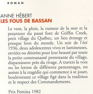 Le vent, la pluie, la rumeur de la mer et la pesanteur du passé font de Griffin Creek, petit village du Québec, un lieu étrange et presque hors du monde. Un soir de l'été 1936, deux adolescentes disparaissent près du rivage. A travers la voix ou les lettres des différents personnages, on assiste à la tragédie qui commence à se jouer, bouleversant ce village figé dans la tradition. Prix Femina 1982