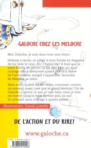 Moi, Galoche, je suis dans tous mes états! Jérémie a tendu un piège à mon Émilie en feignant de lui faire la cour. Ah! l'hypocrite! Il faut que je sorte Émilie du pétrin! Je lui dois bien ça: quel courage elle a démontré quand elle m'a libéré de l'animalerie, malgré l'opposition farouche de Marilou, sa mère. Mais voilà, quand on est chien, comment contrer un ennemi aussi rusé que le grand Jérémie? Foi de Galoche, j'ignore ce que je vais faire, mais je vais me battre jusqu'à mon dernier poil, ça oui! En prenant mon courage à quatre pattes...