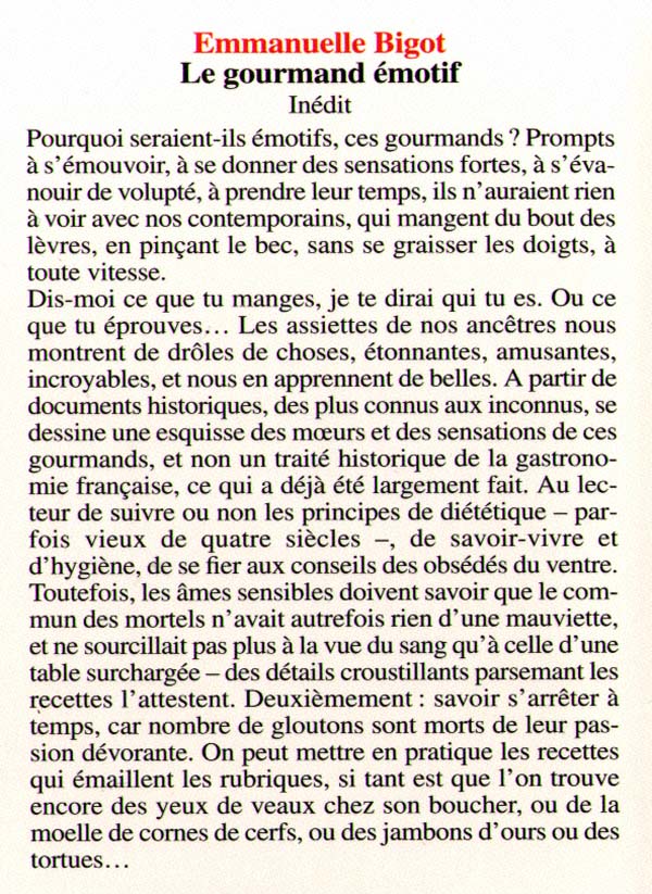 Le Gourmand émotif , BIGOT, EMMANUELLE