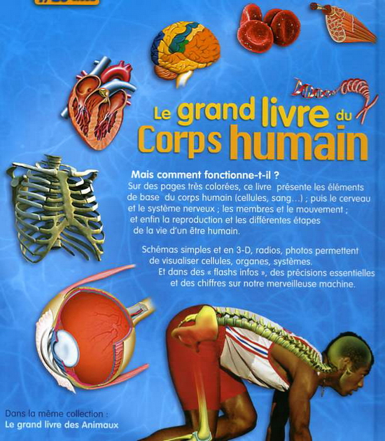 Mais comment fonctionne-t-il ? Sur des pages très colorées, ce livre présente les éléments de base du corps humain (cellules, sang...) ; puis le cerveau et le système nerveux ; les membres et le mouvement, et enfin la reproduction et les différentes étapes de la vie d'un être humain. Schémas simples et en 3-D, radios, photos permettent de visualiser cellules, organes, systèmes. Et dans des " flash infos ", des précisions essentielles et des chiffres sur notre merveilleuse machine.