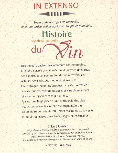 Hist. sociale & culturelle du vin - GILBERT GARRIER