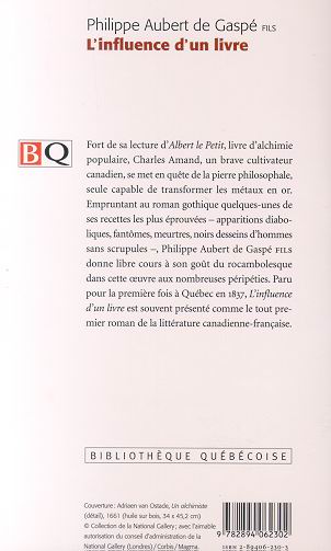 Fort de sa lecture d’Albert le Petit, livre d’alchimie populaire, Charles Amand, un brave cultivateur canadien, se met en quête de la pierre philosophale, seule capable de transformer les métaux en or. Utilisant quelques-unes des recettes les plus éprouvées du roman gothique – apparitions diaboliques, fantômes, meurtres, noirs desseins d’hommes sans scrupules –, l’auteur donne libre cours à son goût du rocambolesque. L’influence d’un livre est souvent présenté comme le tout premier roman de la littérature canadienne-française. Tombé trop rapidement dans l'oubli après sa première publication en 1837, il est redécouvert quelques décennies plus tard par l'abbé Casgrain, figure de proue de la critique littéraire au XIXe siècle.