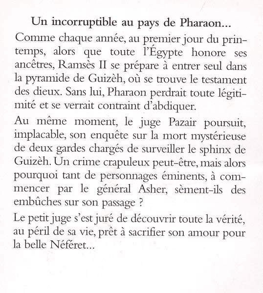 Une enquête policière menée dans l'Egypte de Ramsès II par un petit juge de province qui va découvrir un redoutable complot visant à renverser le pouvoir central.