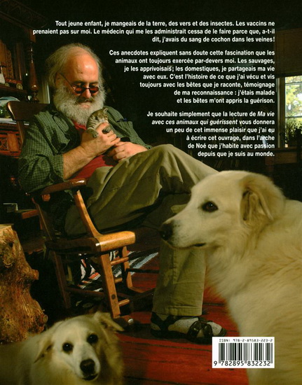 Dans Ma vie avec ces animaux qui guérissent, Victor-Lévy Beaulieu raconte son vécu « du bord des bêtes », des anecdotes, du vécu vrai, de l’échinement sur la terre rocheuse du rang Rallonge à Saint-Jean-de-Dieu à la fermette peuplée de bien bon monde qu’il a construite le long de la route nationale à Notre-Dame-des-Neiges. Superbement illustré, cet ouvrage s’adresse à des lectrices et des lecteurs de tous les âges qui auront grand plaisir à embarquer dans cette arche de Noé qui navigue sur la passion de toute une vie.
