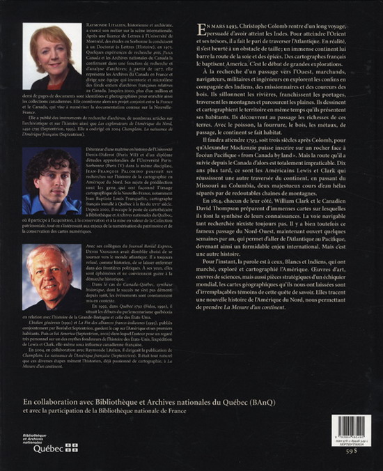 Pour l'instant, la parole est à ceux, Blancs et Indiens, qui ont marché, exploré et cartographié l'Amérique. 'uvres d'art, 'uvres de sciences, mais aussi pièces stratégiques d'un échiquier mondial, les cartes géographiques qu'ils nous ont laissées sont d'irremplaçables témoins de cette quête de savoir. Elles tracent une nouvelle histoire de l'Amérique du Nord, nous permettant de prendre la mesure d'un continent.