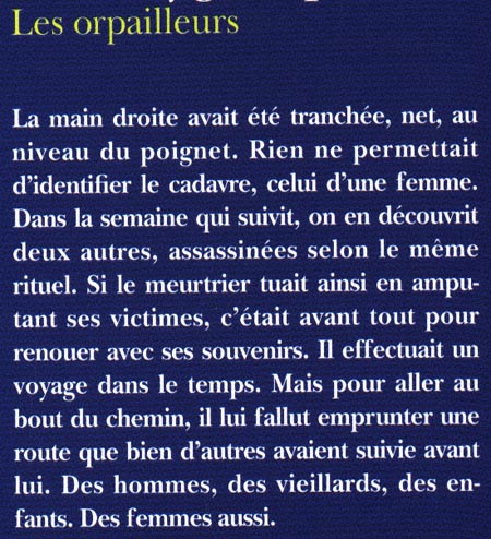 La main droite avait été tranchée, net, au niveau du poignet. Rien ne permettait d'identifier le cadavre, celui d'une femme. Dans la semaine qui suivit, on en découvrit deux autres, assassinées selon le même rituel. Si le meurtrier tuait ainsi en amputant ses victimes, c'était avant tout pour renouer avec ses souvenirs. Il effectuait un voyage dans le temps. Mais pour aller au bout du chemin, il lui fallut emprunter une route que bien d'autres avaient suivie avant lui. Des hommes, des vieillards, des enfants. Des femmes aussi.. L'œuvre de Thierry Jonquet est très largement reconnue. Sur un ton singulier, il écrit romans noirs et récits cocasses, où se mêlent faits divers et satire politique. Ce romancier figure parmi les plus doués de sa génération..