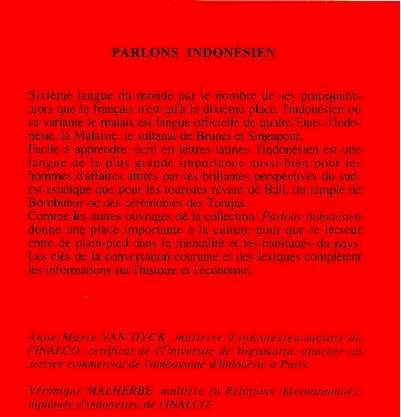 Parlons indonésien , VAN DYCK, ANNE-MARIE *MALHERBE, VÉRONIQU