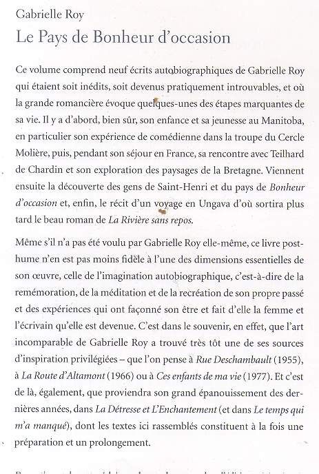 Le Pays de Bonheur d'occasion , ROY, GABRIELLE
