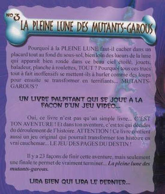 Pourquoi à la PLEINE LUNE faut-il cacher, dans un placard, baladeur et planche à roulettes, et que ces derniers se mettent à hurler comme des loups pour ensuite se transformer en terrifiants... MUTANTS-GAROUS ?