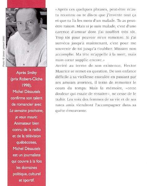 La Semaine prochaine, je veux mourir , DESAUTELS, MICHEL