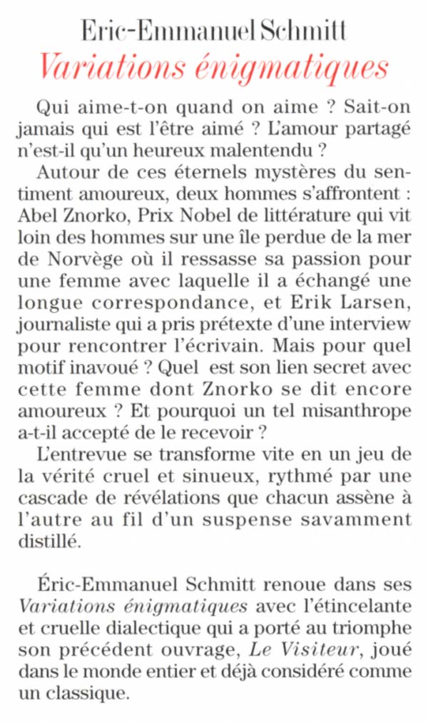 Variations énigmatiques , SCHMITT, ERIC-EMMANUEL