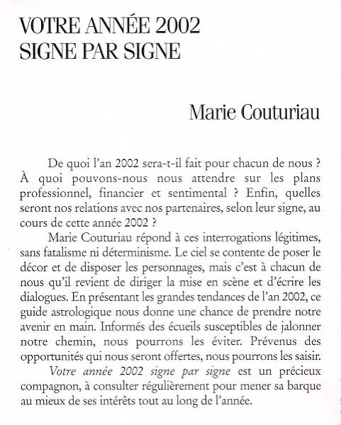 Votre année 2002 signe par signe - MARIE COUTURIAU