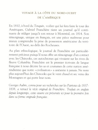 Voyage à la côte du Nord-Ouest - GABRIEL FRANCHERE - G AUBIN