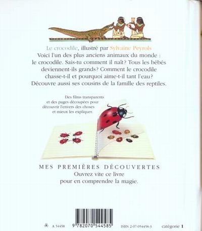Le crocodile, illustré par Sylvaine Peyrols Voici l'un des plus anciens animaux du monde : le crocodile. Sais-tu comment il naît ? Tous les bébés deviennent-ils grands ? Comment le crocodile chasse-t-il et pourquoi aime-t-il tant l'eau ? Découvre aussi ses cousins de la famille des reptiles.. Mes premières découvertes. Ouvrez vite ce livre pour en comprendre la magie..