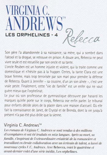 Son père l'a abandonnée à sa naissance ; sa mère, qui a sombré dans l'alcool et la drogue, se retrouve en prison. A douze ans, Rebecca ne peut vivre seule et est recueillie par son oncle et sa tante.. L'oncle Reuben est un homme injuste et violent, qui la traite comme une domestique et n'hésite pas à la frapper. Certes, la tante Clara est une brave femme, mais trop terrorisée par son mari pour prendre la défense de Rebecca. Quant à Jennifer - sa cousine, d'un an son aînée -, c'est une vraie peste. Finalement, cette "vie de famille" est un enfer qui ne vaut guère mieux que l'orphelinat.. Le jour où son professeur de gymnastique découvre par hasard les marques qu'elle porte sur le corps, Rebecca ose enfin parler. Le tribunal pour enfants décide alors de la placer dans une maison d'accueil. Où elle fait la connaissance de Janet, de Crystal et de Brenda, dont la vie jusqu'à présent n'a pas été plus drôle que la sienne..