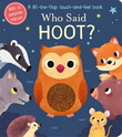 Who said hoot? Was it wolf? No, it was owl! Lift the peek-through flaps to find out which animal makes each noise!