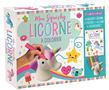 Un cahier d'illustrations sur le thème des licornes et un jouet en mousse à l'effigie de cet animal, à colorier.