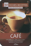 Une cinquantaine de fiches, présentées dans une boîte métallique, avec des recettes de boissons du monde entier à base de café et de desserts pour accompagner le café.