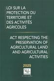 Elle contient le texte bilingue et à jour de la Loi sur la protection du territoire et des activités agricoles, RL... » Lire la suite...