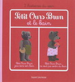 Deux histoires réunies autour d'un même thème. Petit Ours Brun joue dans son bain, avec sa tortue et son poisson. Mais c'est bientôt l'heure du dîner et Petit Ours Brun doit sortir.