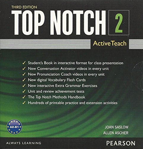 Top Notch 2 ActiveTeach Interactive Whiteboard Tool provides teachers with the Student's Book in interactive format for class presentation; New Conversation Activator videos in every unit; New Pron... » Lire la suite...