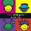 Des couleurs primaires sur des personnages souriants illustrent le thème de la différence, en donnant une image positive.