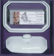 Coffret comprenant 3 mini terrines en céramique au couvercle orné d'un canard, d'un lapin ou d'une poule, et un livre de 30 recettes régionales adaptées à ces mini terrines : foie gras, rillettes...